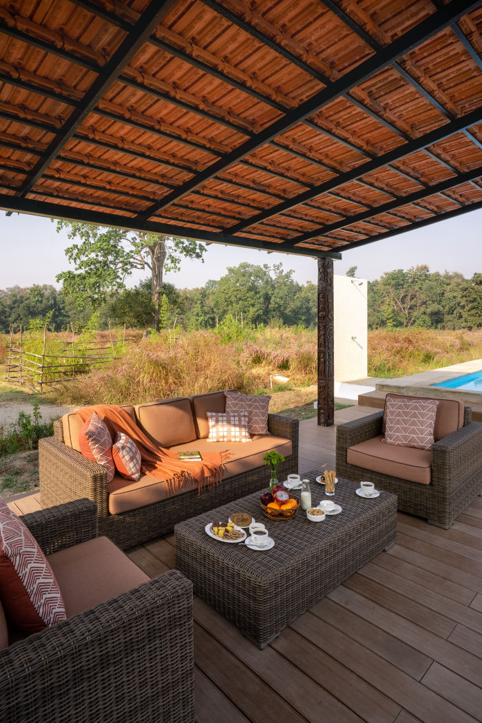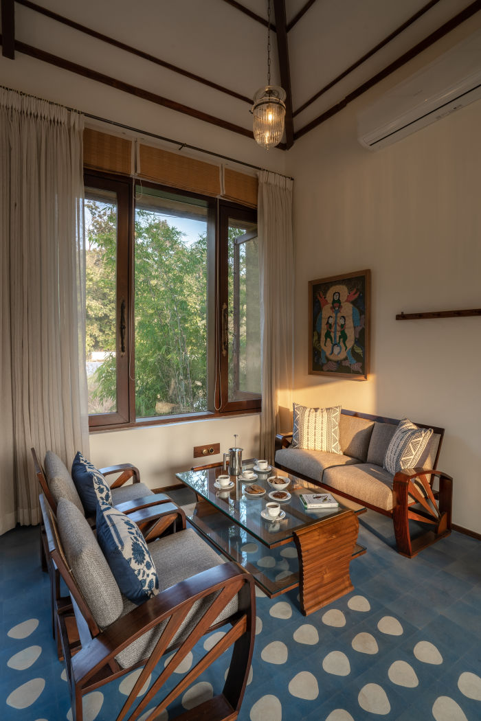 The element of Wind conveys freedom, movement, and breath. The villa’s design embraces open spaces and high ceilings that allow natural airflow to sweep through, creating a sense of lightness and peace. Breezy courtyards and verandas invite you to bask in the cool winds of Pench, while tall windows frame sweeping views of the wilderness.