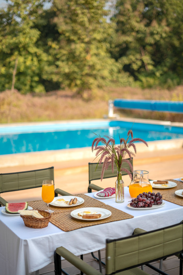 Less than three percent of the property is developed, with the remainder preserved as grasslands, woodland, and thriving kitchen gardens. This approach invites local wildlife to wander freely, making the lodge a haven for deer, gaur, and even the elusive tiger. Guests can savour seasonal produce from our chemical-free gardens, which highlight our dedication to sustainable living.